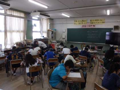 6月17日(火)の6時間目、5年生の理科の授業の様子です。はじめに、Kahoot!というアプリを使用して、興味・関心を引き付けた後、テストを行いました。