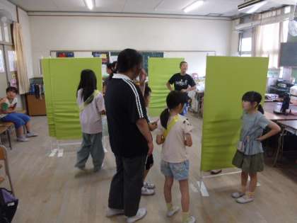 写真は、「○×クイズ」,「言葉みつけ」,「ポーズ合わせ」の様子です。