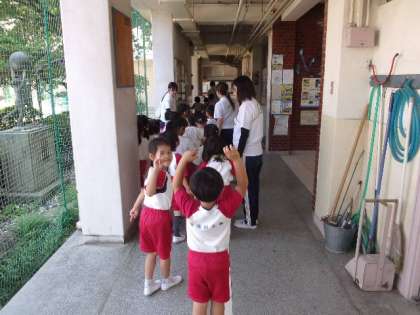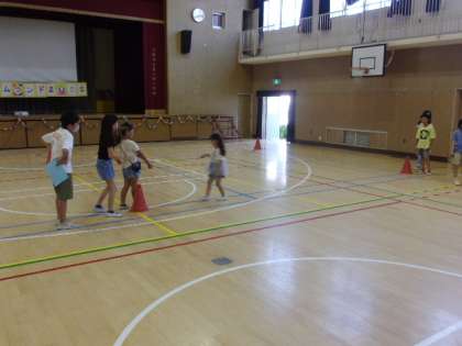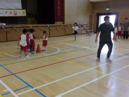 写真は、「ピンポン玉リレー」の様子と、近隣の大東幼稚園の園児も参加した様子です。楽しそうです。