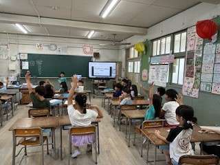 あらかじめ、委員の児童の代表のみなさんが、先生たちに調査して作成した「○×クイズ」です。えー、とか、キャーとか、歓声が起こり、楽しいクイズ大会になりました。