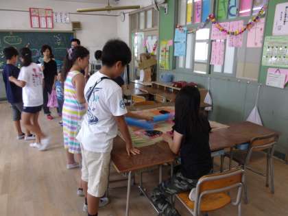 6月25日に土曜授業で、東小路ドリームランドを行いました。この日まで、各たて割り班でお店の内容を決めたり、いろいろな準備物を作ったり、1年生から6年生まで協力して頑張ってきました。