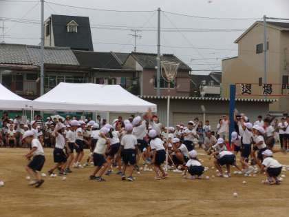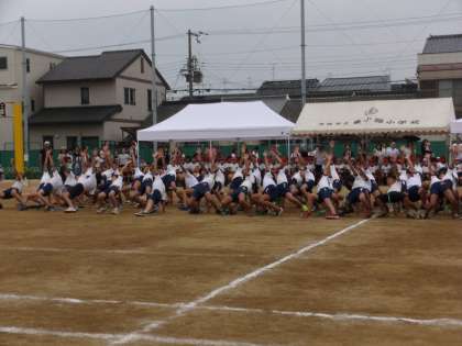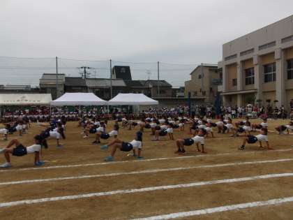 写真は、上から低学年、中学年、高学年の演技・競技です。