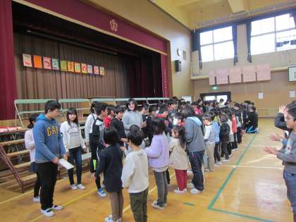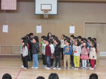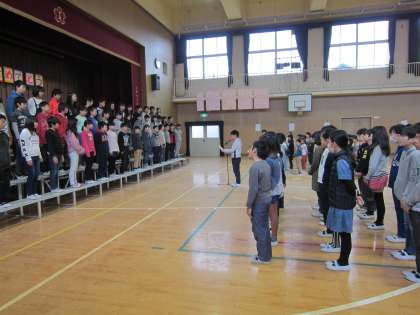 3月9日 1時限目に「6年生を送る会」を行いました。1年生から5年生は、学年ごとに歌と呼びかけの言葉で6年生に感謝の気持ちを伝えました。6年生は、在校生に手作りの雑巾をプレゼントし、合唱を披露しました。子ども達の気持ちが伝え合うことができた心温まる「6年生を送る会」になりました。