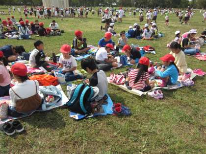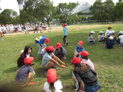 たてわり班ごとにお弁当を食べ、午後からは、自分たちで考えたゲームをしました。