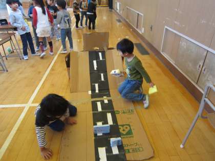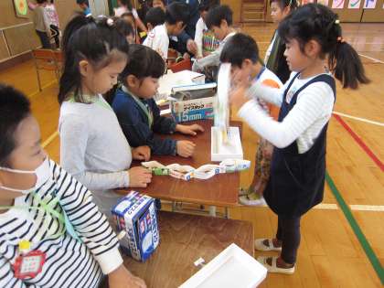 子ども達がそれぞれのお店で楽しく遊んでいます。