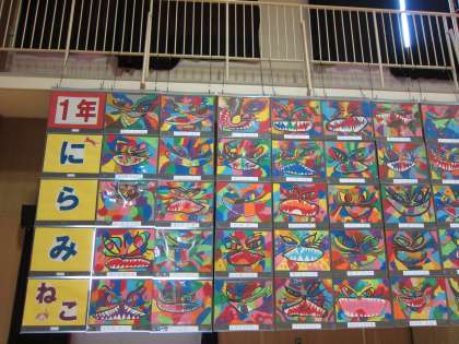 本日から作品展が始まりました。児童が一生懸命に取り組んだ力作ぞろいです。明日17日も午前9時から正午まで実施いたします。保護者の皆様、地域の皆様、ぜひお越しください。