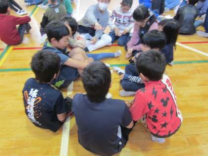 11月22日 今日の児童集会では、スピードしりとりをしました。各班でしりとりをして、1分間に何人が言えるかを競い合いました。みんなで協力して楽しい時間を過ごしました。