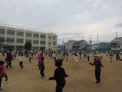 先週から延期になっていたなわとび週間が始まりました。15分休憩に全児童が運動場に出て、なわとびを行いました。なわとびをした後も時間が終わるまで友だちとなわとびを楽しんでいる児童がたくさんいました。