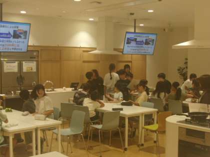 館内と調理室はとても清潔で、大阪ガスネットワーク株式会社の担当者の方の説明もわかりやすく、子どもたちも真剣に聞いていました。