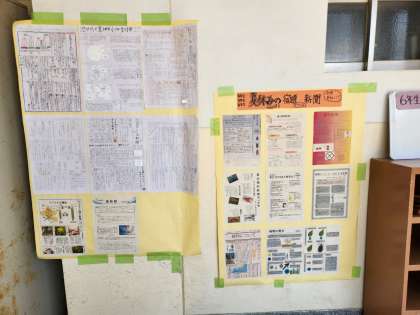 1階理科室のろう下側に、4〜6年生の夏休みの宿題が掲示されています。どれも力作揃いです。