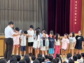 9月29日(月)8時30分より講堂で、全校朝会が行われました。
