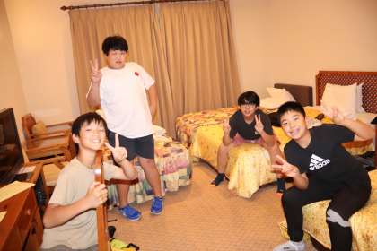 夕食後、荷物を整理して、入浴準備をして、その後、部屋でくつろいでいる様子です。
