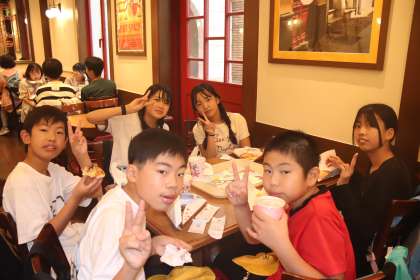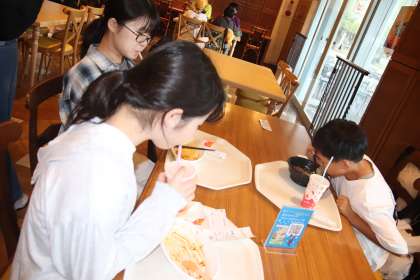 園内でのスクールミールクーポンを利用した昼食です。班であらかじめ話し合って決めたレストランに向かいます。みんな、美味しくいただきました。