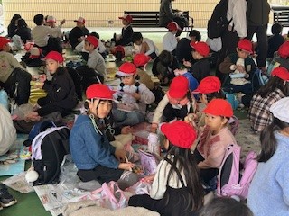 一旦、昼食場所まで戻って、楽しいお弁当の時間です。中には、キャラ弁を持ってきている人もいて、食べるのが名残惜しい感じでした。おやつタイムもあり、決められたルールで、昔懐かしい駄菓子を食べている人もいました。