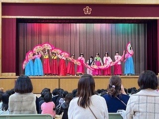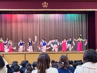 高学年の女子によるプチェチュムです。華麗な舞と優雅さを兼ね備えた演技に、鑑賞している子どもたちや保護者から、拍手が沸き起こります!