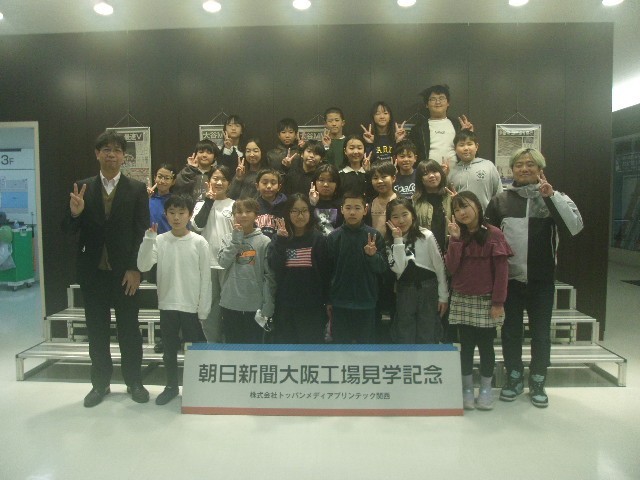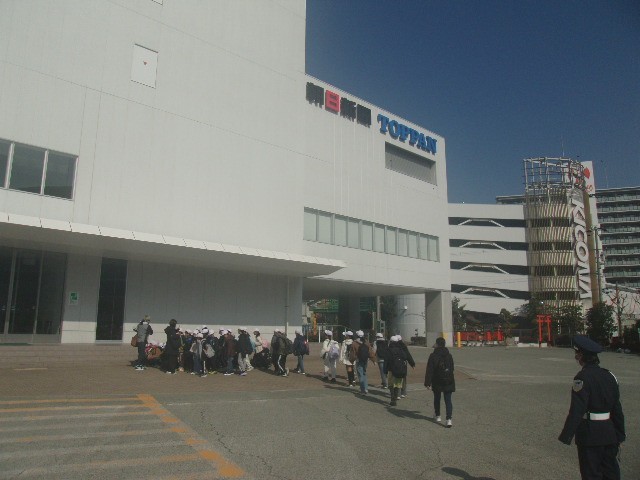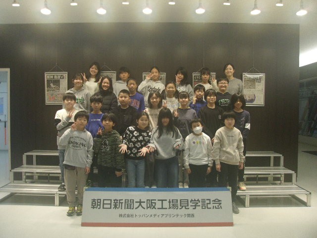 2月13日(金)の午前10時00分より、5年生は社会見学に行きました。大阪メトロ小路駅から終点・野田阪神駅まで乗り、そこから徒歩約15分で、1つ目の目的地・朝日新聞社の印刷工場に到着しました。クラス別に見学し、正午に夕刊がちょうど刷り上がってくるところを見学することができました。一気に10万部が印刷されました。また、ロボットで巻き取り紙の交換をする様子も見ることができました。
