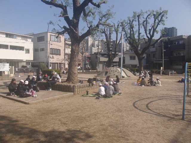 朝日新聞工場をあとにし、近くの公園でお昼ごはんを、いただきま~す!お友達と一緒に、お弁当を美味しくいただきました。