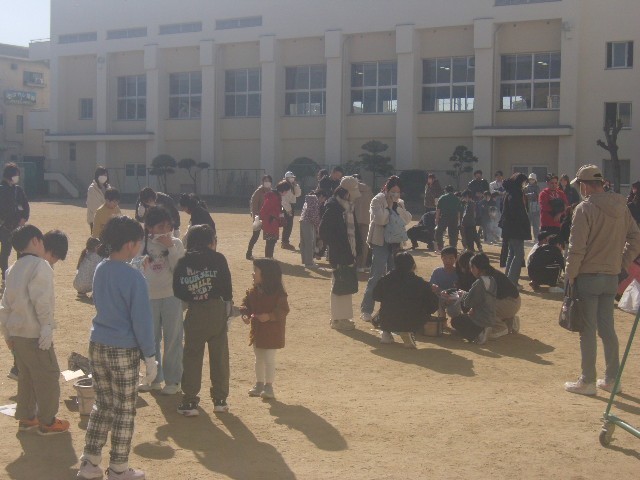 1年生は、各教室で「できるようになったよ!」です。2年生は、各教室で「あしたへジャンプ」です。3年生は、運動場で「七輪を使ってもちを焼こう」です。どの学年も、楽しく取り組めています。