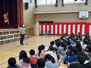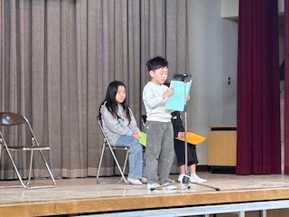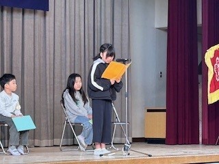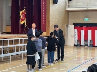 3月23日(月)午前8時50分より講堂で、令和7年度の修了式が行われました。まず初めに、4年生と1年生の各クラスの代表が、これまで頑張ってきたことをスピーチしました。どの児童も、素晴らしかったです。
