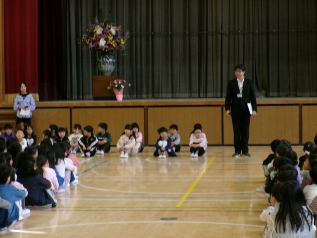 校長からは、入学式で1年生のみんなと約束した3つの内容「話をよく聞こう」「元気よくあいさつをしよう」「友だちをたくさんつくろう」を確認して、わからないことや困ったことがあったら、お姉さん・お兄さん・担任の先生・近くにいる先生に教えてもらいましょう、とあいさつがありました。