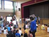 10月25日 今日の児童集会は、「音当てクイズ」をしました。講堂の舞台の幕の後ろ...