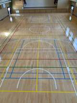 体育館の床の改修工事が終わり、あとは検査を待つのみとなりました。予定通り進めば、...