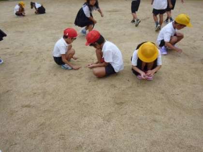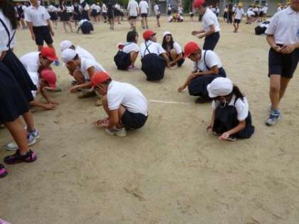 今日の児童集会は運動会に向けて、石拾いでした。