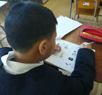 カタカナ学習の他に、『たのしいがっこう』という教材から学校生活に必要な表現を学んでいます。
