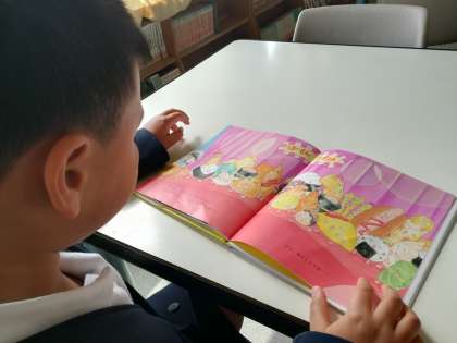 図書室で好きな本を読みながらの学習です。ゆっくりですが、全て一人で読めるようになりました。