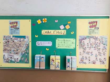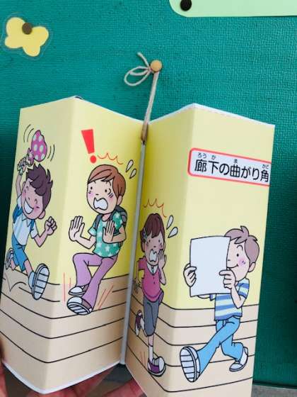 今月は「けがの予防」のために、子どもたちの想像力を養う掲示物です。