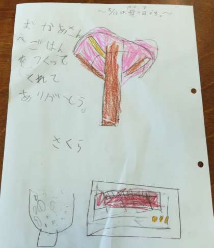 今週末は、母の日です。日頃の感謝をこめて、おてがみを書きました。