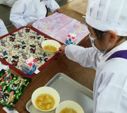 自分たちだけで、給食の準備もスムーズに行えるようになってきました。