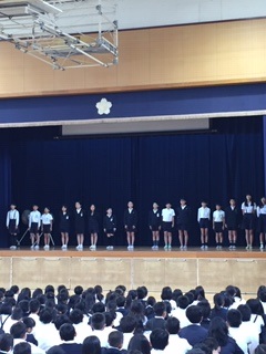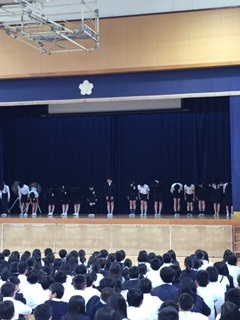 児童会代表の子ども達が、一人一人「巽小学校をよくするために自分が頑張りたいこと」を大きな声で発表していました。