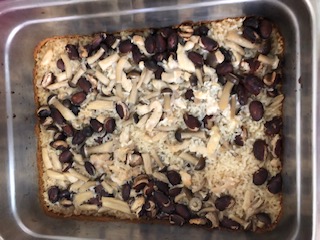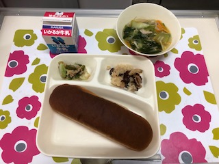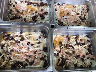 〇今日は、鶏肉、金時豆,しめじの入った『金時豆の中華おこわ』です。
