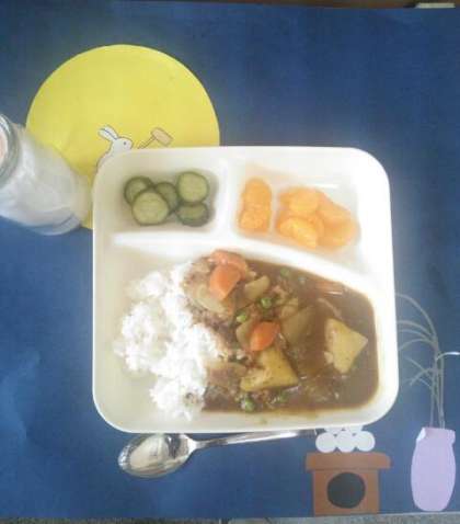 9月10月は、食物アレルギー対応サポート月間としています。そのため今日のビーフカレーライスのカレールウの素は、小麦アレルギーに対応する為、米粉のカレールウの素を使用しています。