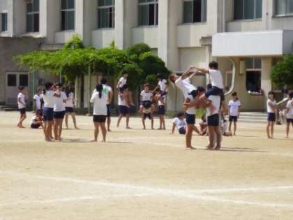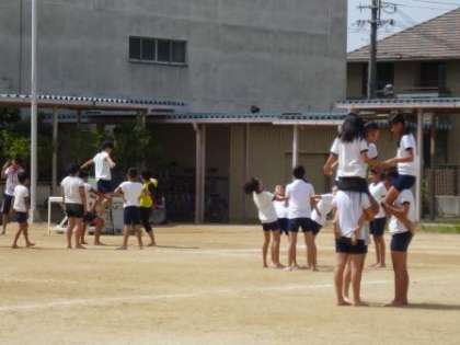 6年生の練習の様子です。グループごとに組み立て体操の練習をしています。