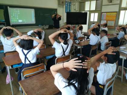 ‘Hello, everyone’ という単元を学習しています。今日学んだ ‘I like ~ / I don’t like ~.’ の表現を使って、’Eraser game’ をしました。C-NETのニルファー先生がキーフレーズを口にしたらすぐに、二人の席の真ん中にある消しゴムをどちらが早くとるかというゲームです。大盛り上がりの楽しい学習となりました。