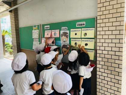 遠足で動物園に行った1年生は、動物に興味津々でした。