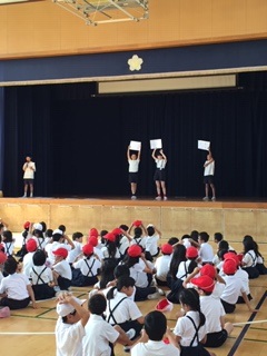 今日は、2年生・4年生ペア学年の児童集会がありました。