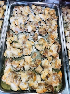 〇「鶏肉のおろしじょうゆかけ」は、塩と料理酒で下味をつけて焼いた鶏肉に、ゆず(果汁)の入ったさっぱりとしたおろしじょうゆをかけています。