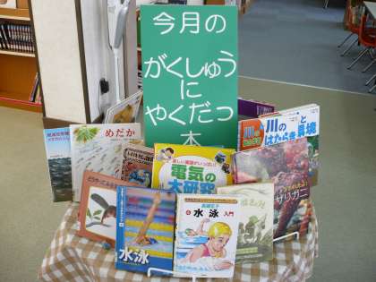 図書館では学習に関連する本を、手にとってもらいやすいよう、丸テーブルに集めています。日々の学習に役立ててほしいです。