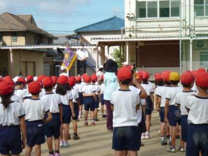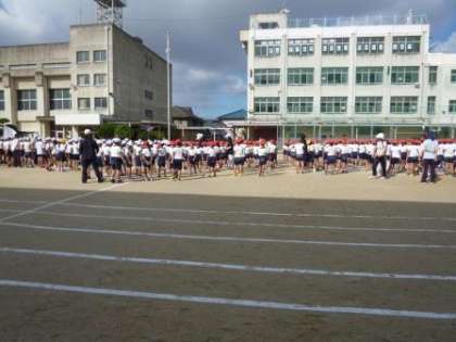 運動会の全体練習が始まりました。今日は入場行進と開会式の練習でした。