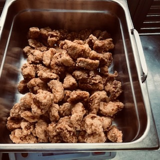 〇豚肉の香味あげには、下味にしょうがを使用しています。
