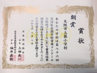 大阪府コンクール見事、銅賞です。みんなよく頑張りました。