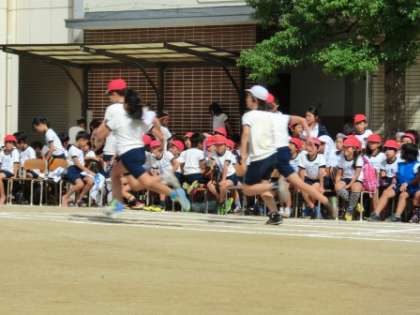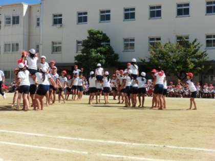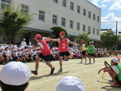 6年生の徒競走、紅白リレー、騎馬戦です。