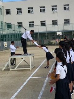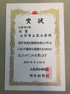 合唱クラブの子ども達が、「大阪府合唱コンクール」で『金賞』を受賞しました。表彰の様子です。