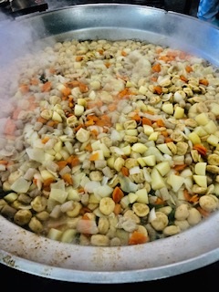 2.にんじん、でんぷんなどを加えて練る。