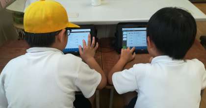 9月11日(水)の様子です。タブレットドリルの算数の問題を二人で同時に解いてみました。時間を競ったり、互いの回答を見比べたりすることも、学習意欲の向上につながっているようです。