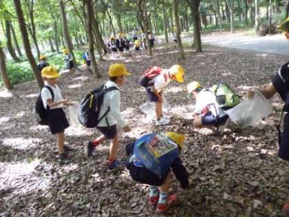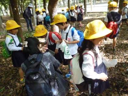 1年生の遠足は、大阪城公園でした。遊具で遊んだり、どんぐりを拾ったりしました。西の丸庭園の広い芝生で食べたお弁当はとてもおいしかったです。