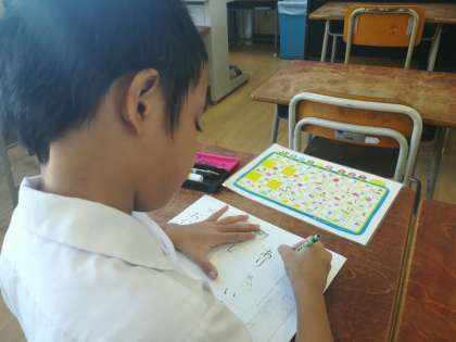 ひらがなの学習では、書き順に気を付けながら、一文字ずつ丁寧に書くようにしています。